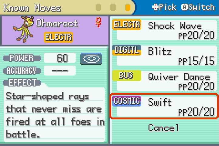 - Moonblast and Flash Cannon crashes the game, at least on mGBA. Something with the animation, I think. Works fine on the old version of VBA that I've been using.